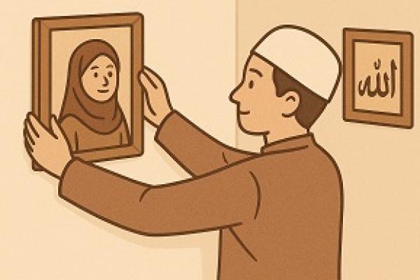 Syariat Islam melarang memajang gambar makhluk hidup secara lengkap di rumah karena: Malaikat rahmat tidak masuk rumah tersebut, mengandung unsur tasyabbuh (menyerupai ciptaan Allah), dikhawatirkan membuka pintu syirik, kebanggaan diri, dan fitnah visual