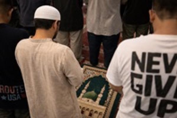 Ilustrasi shalat sajadah bergambar dan kaus bertulisan